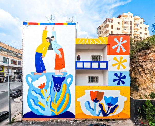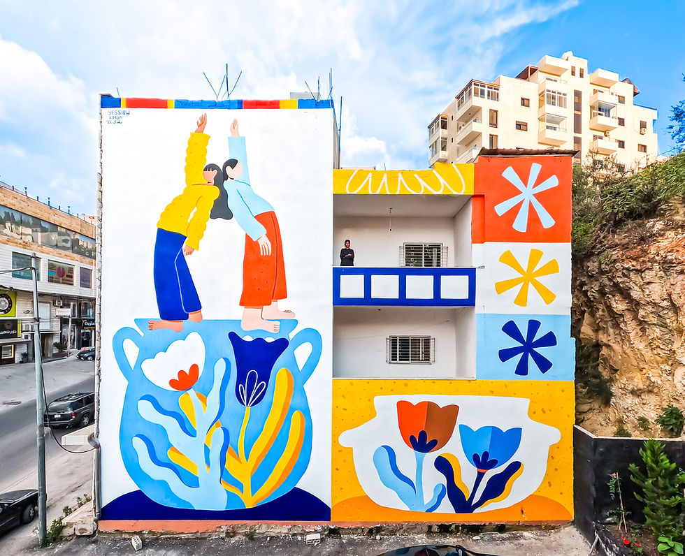 Yessiow was invited to participate in Baladk Street Art Festival in Jordan, an experience she described as one of the most memorable in her mural journey. The warm hospitality and vibrant atmosphere of the festival made a strong impression on her, leaving her grateful to the entire Baladk team for their support and organization.