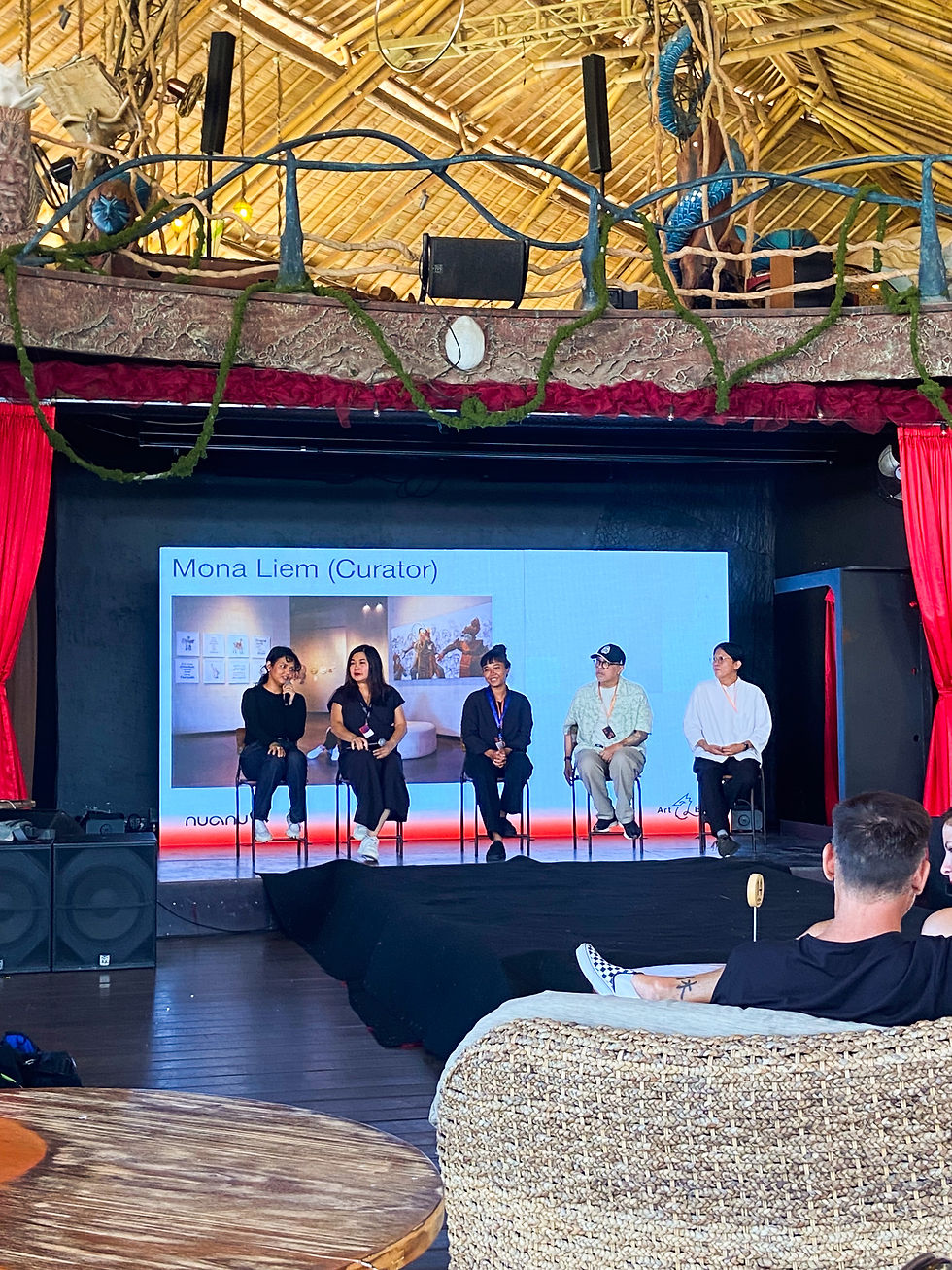As part of the Terra Nexus exhibition at ART&Bali, I joined a panel discussion alongside curator Mona Liem, Nus Salomo, and the Susur Gallur Collective, moderated by Christine G. Toelle. The conversation explored how exhibitions can engage audiences, the role of new media art in contemporary practices, and how curated spaces shape the experience of visitors. I spoke about my artwork Flowing Passage, which was displayed at the entrance of the gallery. I shared the concept behind the rat motifs, the technical approach, and the material choices, reflecting on how these elements communicate narrative and invite viewers into the exhibition. The discussion also touched on the broader dialogue between curatorial intention and artistic expression, highlighting how exhibitions can create meaningful interactions between the artwork and its audience. Participating in this panel offered a chance to exchange ideas with fellow artists and curators about contemporary art practices in Indonesia and beyond.