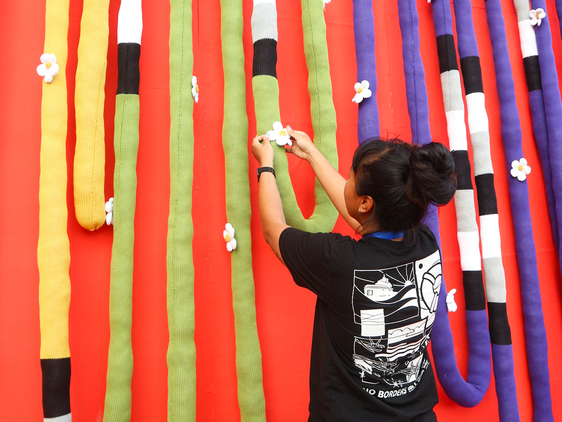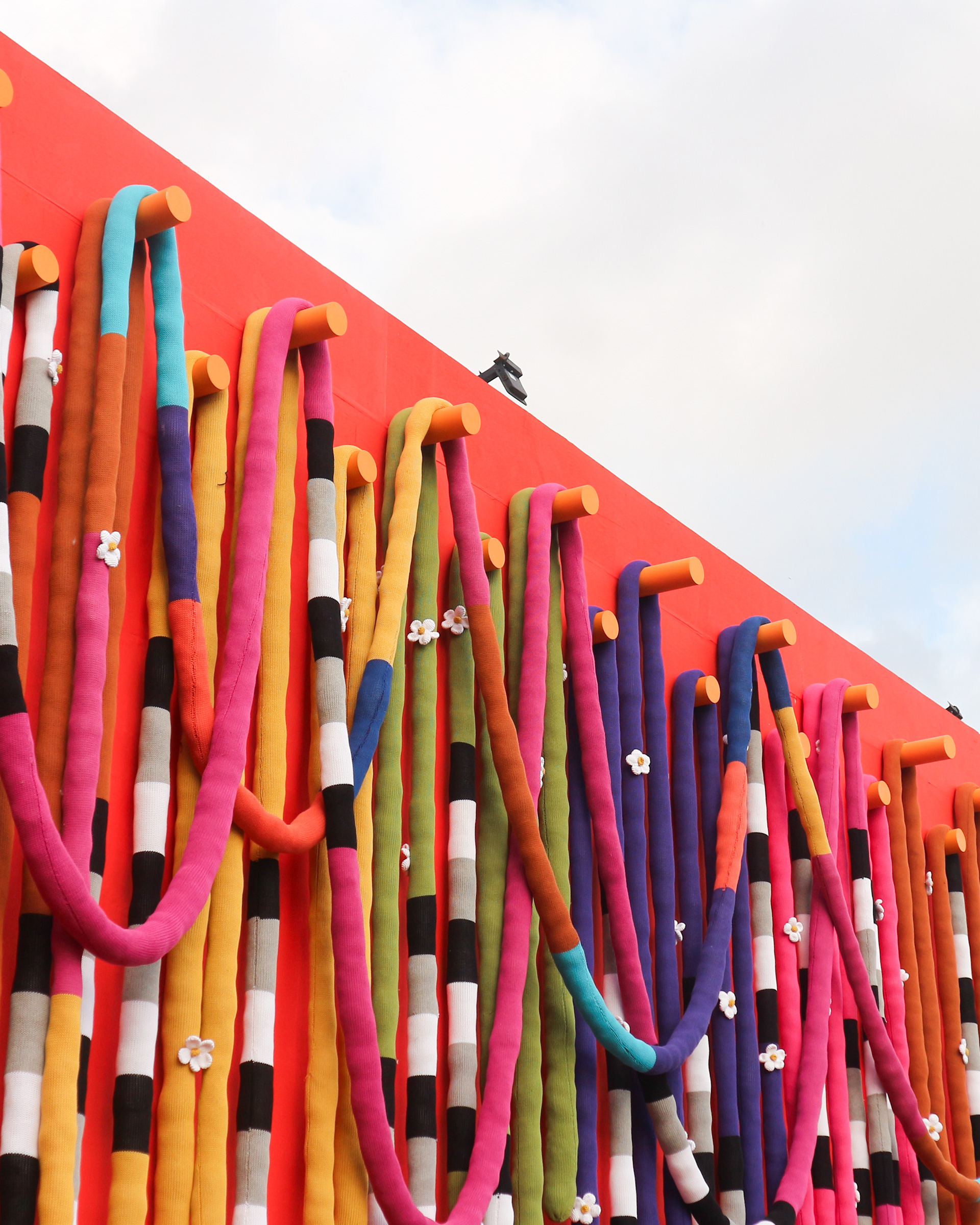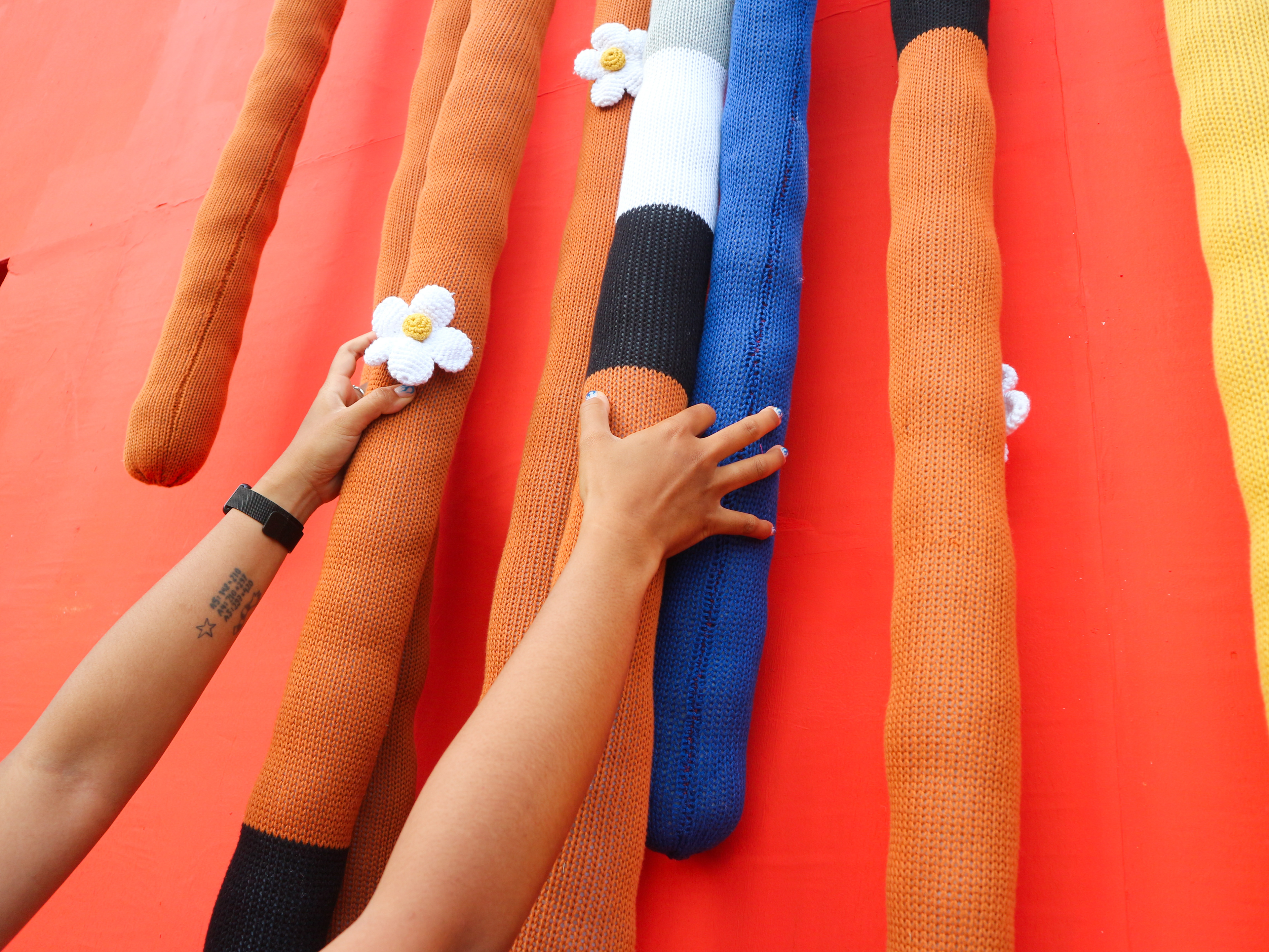This new work is a large-scale textile installation, measuring 250 meters in length and displayed across a 5m x 6.8m wall. Created through knitting and textile techniques.