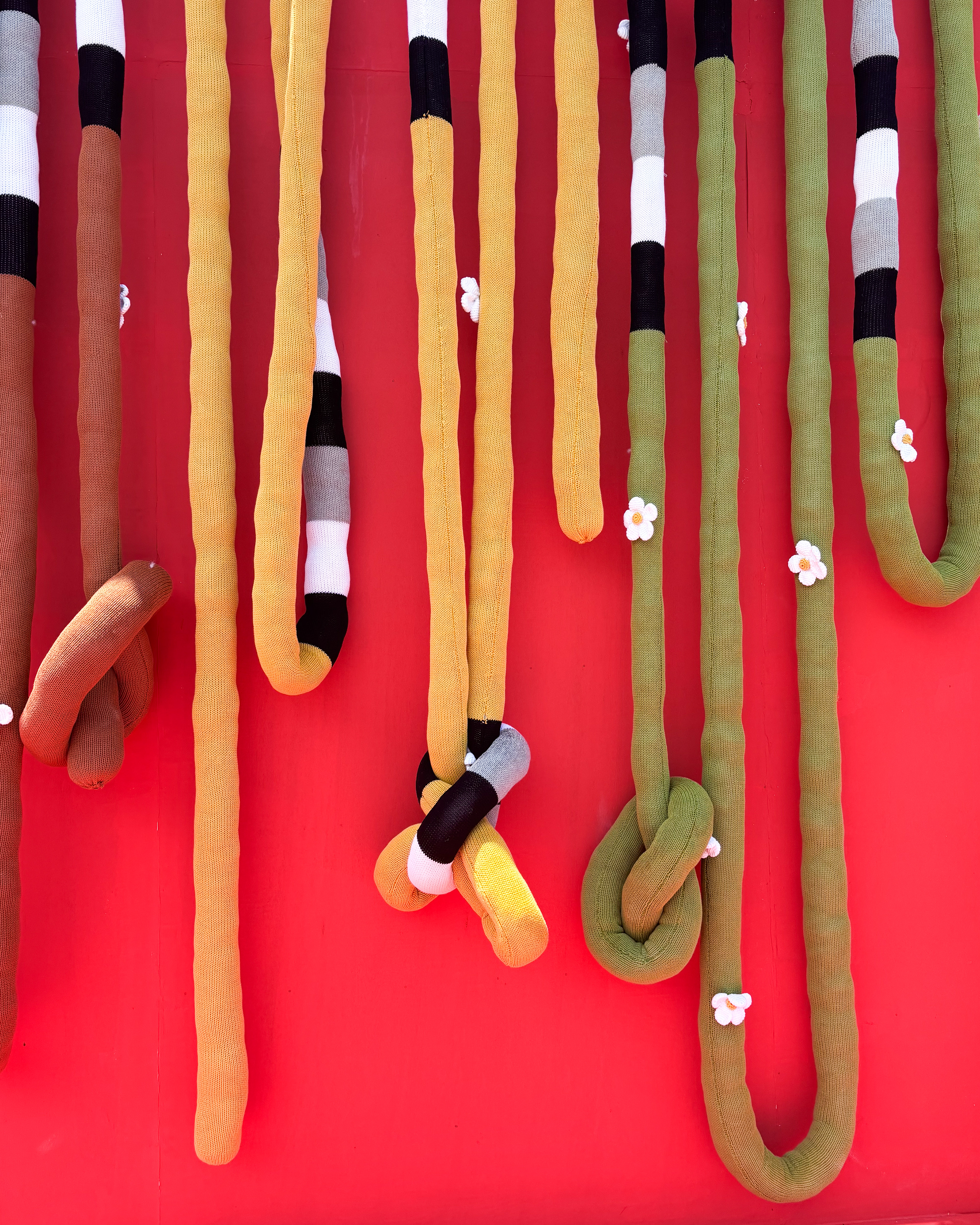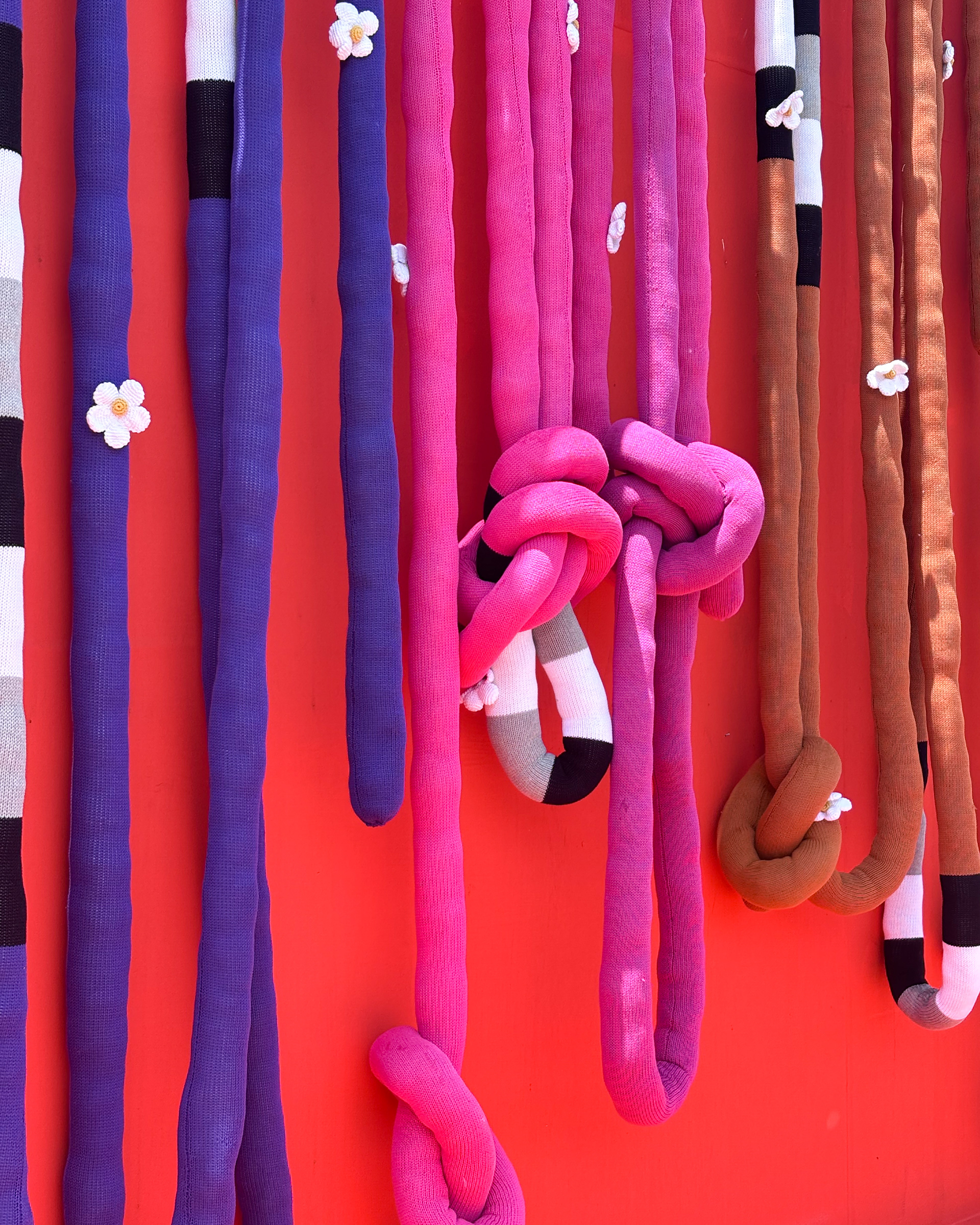 This year, I have worked closely with my parents—who have a lifelong practice in knitting—to create several pieces. This installation is our most ambitious collaboration so far, both in scale and process. Although I grew up surrounded by yarns and fabrics, I only began to embrace textiles in my own practice recently. Working alongside my parents has allowed me to weave their world with mine, bridging family history with contemporary art.