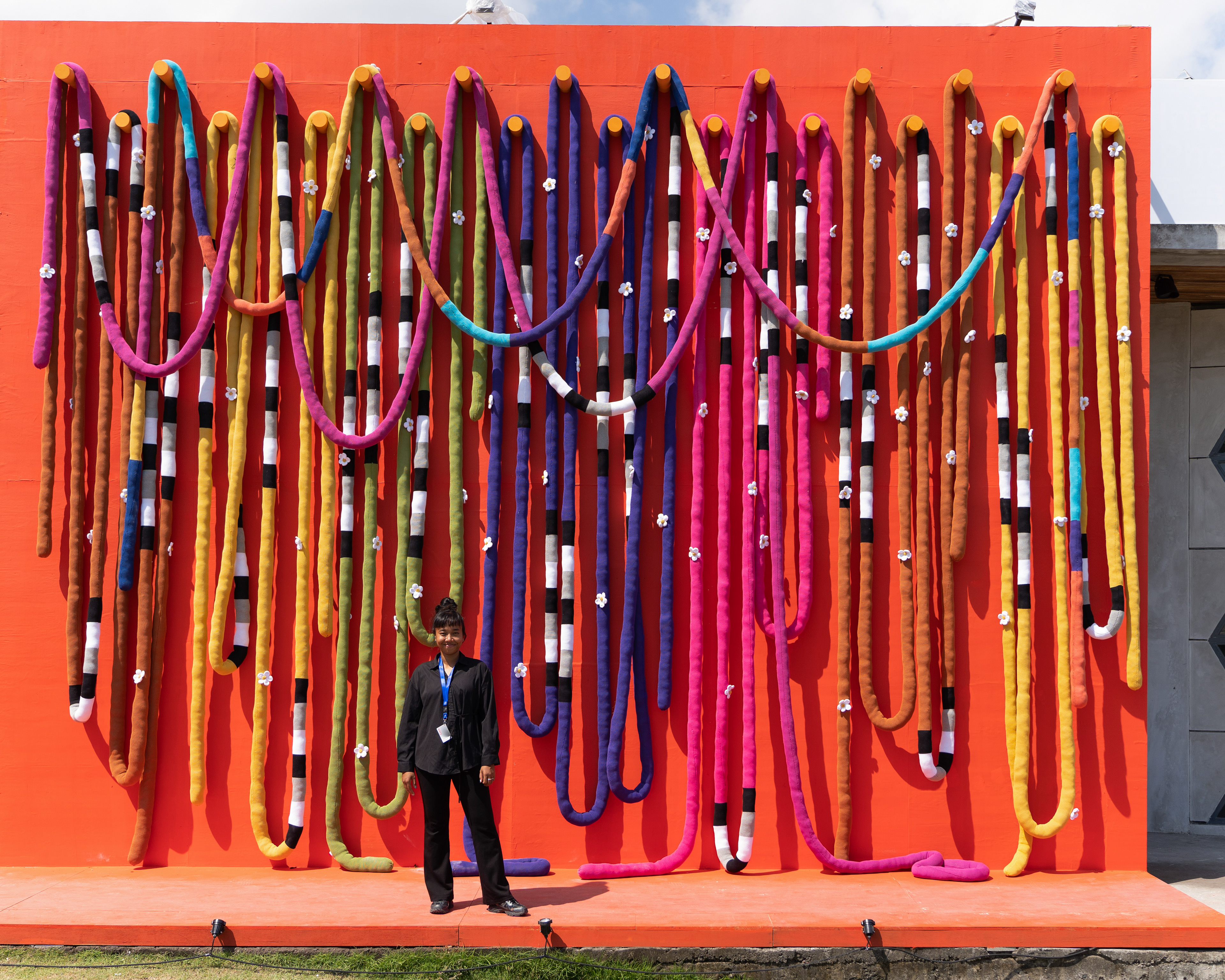 For me, this work is more than its size and materials. It carries our shared story—beginning in the knitting factory where I grew up and now expanding into the art space. It is both personal and collective, a reminder of how collaboration can open new directions in art.